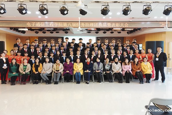 本网讯(通讯员: 陈安宁 摄影: 魏晓波)11月2日中午,电子通信工程学院第八届院务助理团换届暨表彰大会在学校大学生活动中心多功能厅顺利召开。电子通信工程学院副院长钱颜娇、院长助理汪青、行政秘书兼助理团指导老师储金华、学管秘书陈丽、教学秘书李红星,部分教师和辅导员代表参加了大会。受邀参会的还有各二级学院院务助理团、团总支学生会以及各兄弟社团代表。